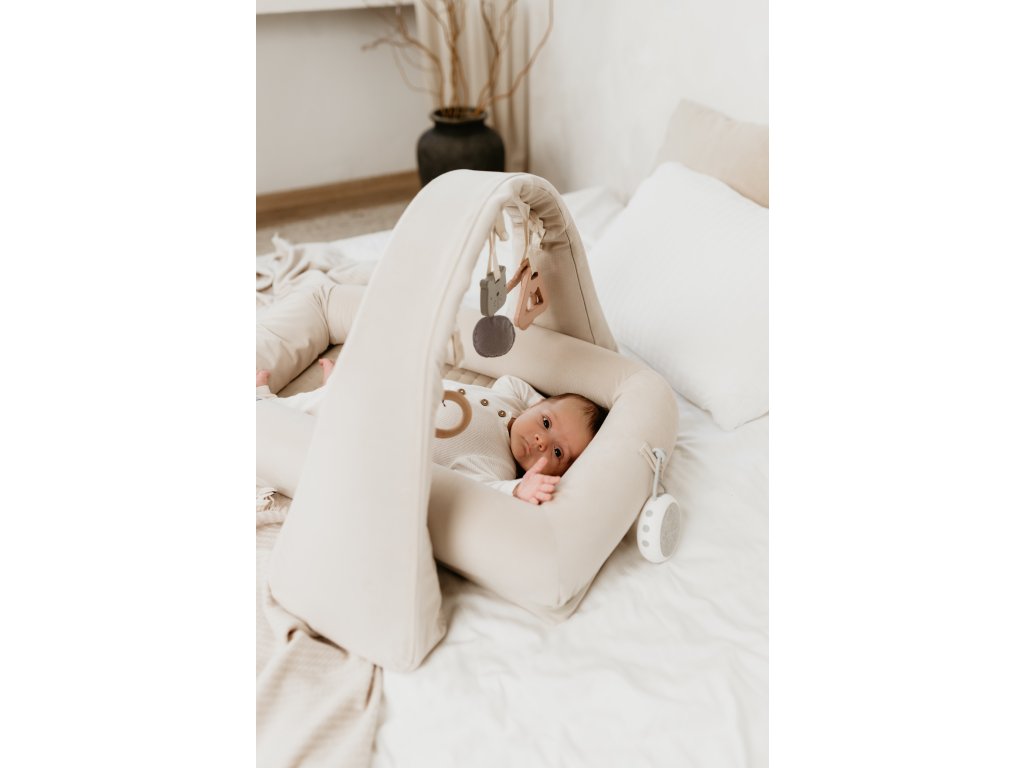 Hrazdička Sleepee je multifunkční a můžete ji využít nejen jako součást hnízdečka, ale také samostatně na hrací dece, posteli nebo gauči.