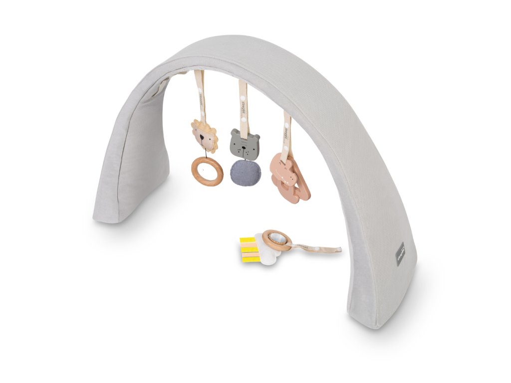 - Hrací hrazdička se 4 hračkami - se zrcátkem, kousátkem, chrastítkem a dalšími senzorickými prvky.