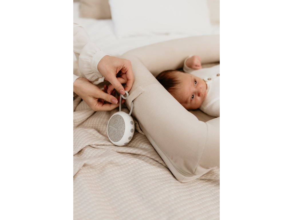 - Díky praktickým silikonovým poutkům zvukový modul snadno připevníte ke kočárku, postýlce, přebalovací tašce nebo autosedačce.