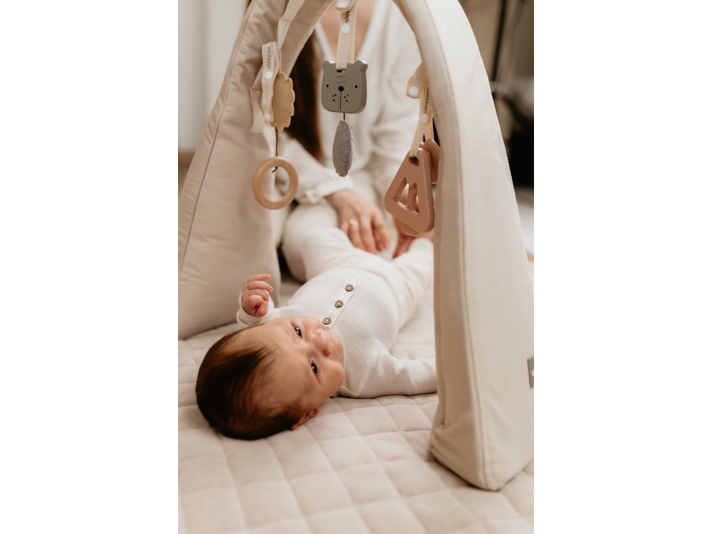 Hrazdička Sleepee je multifunkční a můžete ji využít nejen jako součást hnízdečka, ale také samostatně na hrací dece, posteli nebo gauči.