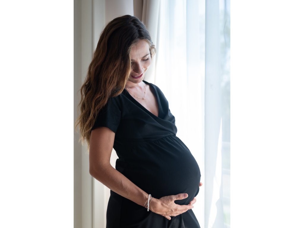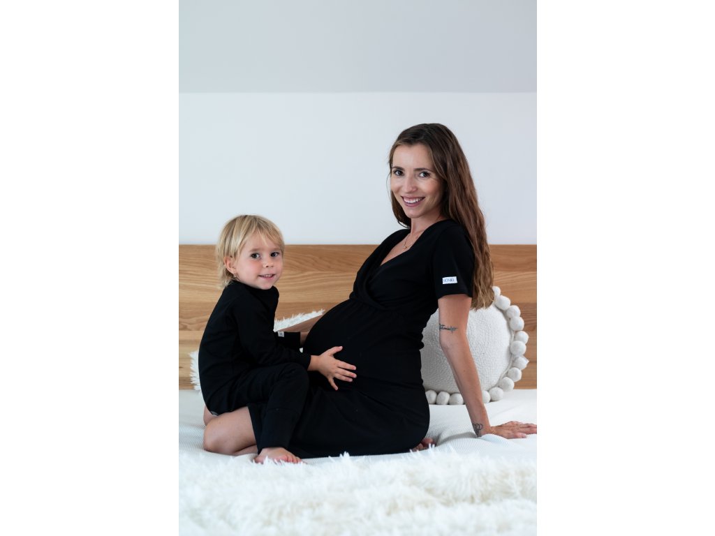 Dámská těhotenská a kojící košilka Moniel All Black černá je noční košilka a pohodlné domácí šaty v jednom! Je to multifunkční kousek oblečení, který vám vydrží po celou dobu těhotenství, kojení a mateřství.