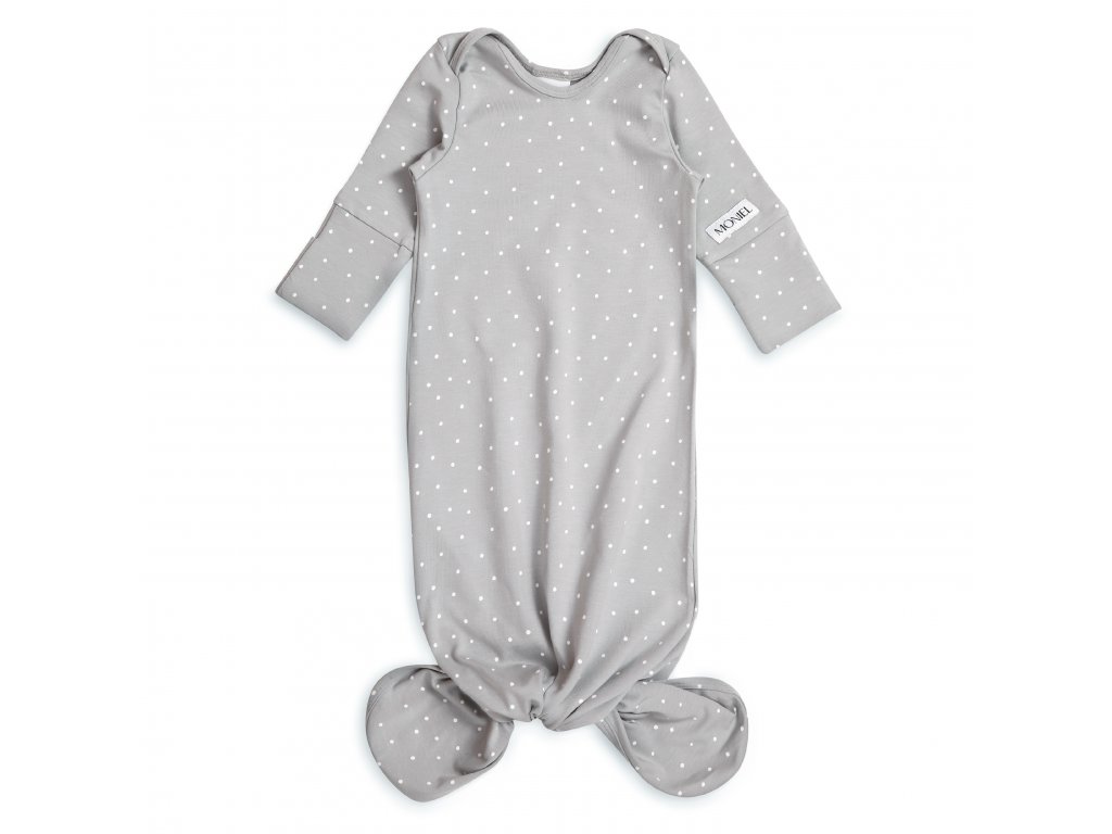 Novorozenecké rostoucí body s uzlem Dots šedá od české značky Moniel je vhodné pro miminka od narození do 3-4 měsíců.