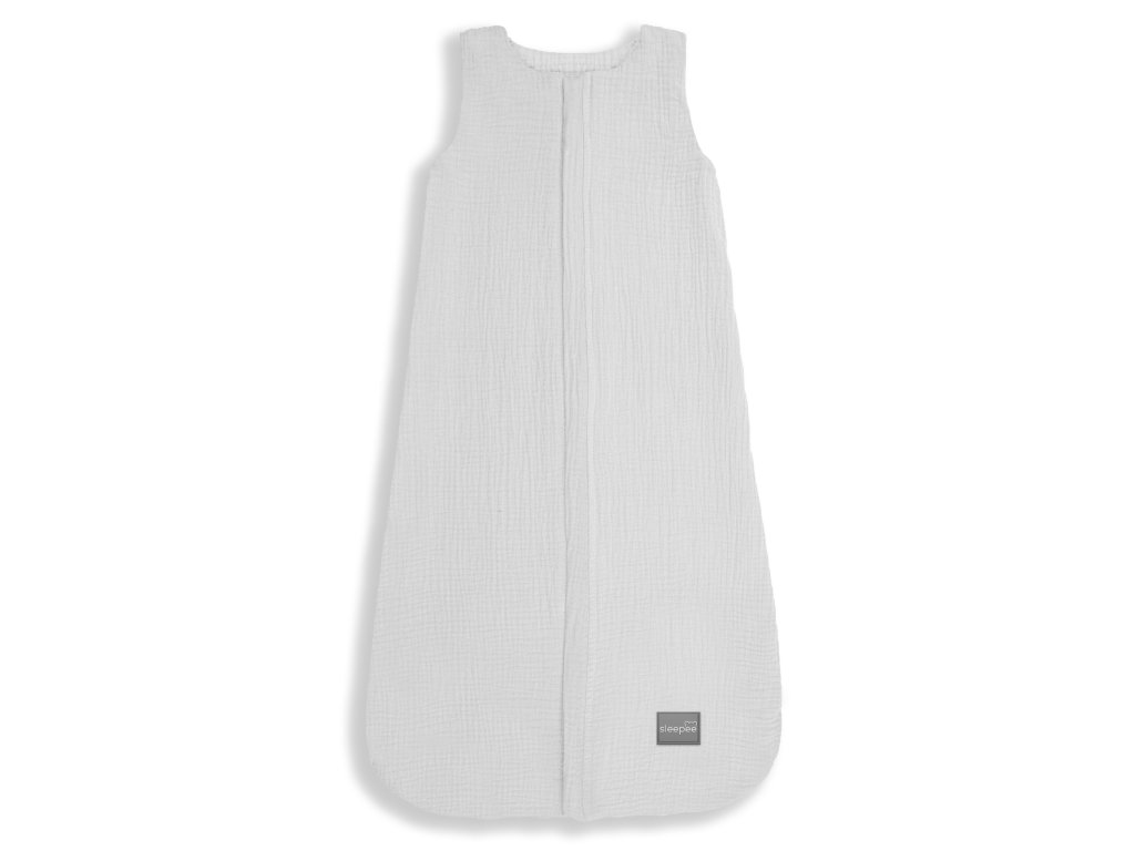 Mušelínový spací pytel Sleepee Summer Light Grey 4-24 měsíců (vel. M) je oboustranný a jediný svého druhu na našem trhu. Jedná se o pytel 2 v 1, protože jej lze snadno převrátit a získat tak novou barvu.