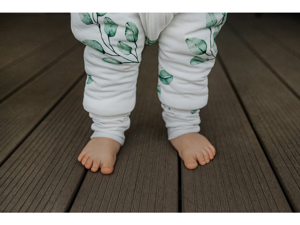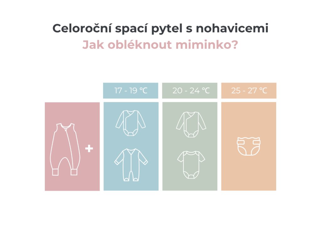 Nohavice mají zakončení stejné, jako u některých dětských bodyček a overalů - okraji nohavic tak můžete jednoduše překrýt nožky dítěte a zajistit jim ještě větší teplo. Nohavičky můžete překrýt až v průběhu spánku podle toho, zda je dítěti teplo nebo zima.