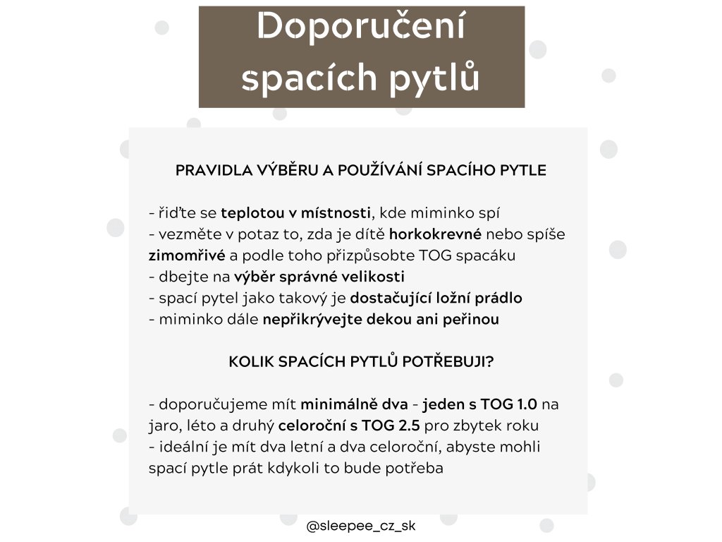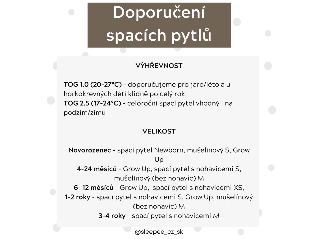 Oboustranný spací pytel s nohavicemi Sleepee Černé tečky (vel. XS) je inovativní a perfektní produkt pro spaní miminek. Poskytuje dokonalé pohodlí, teplo a absolutní svobodu pohybu po celou dobu spánku i při večerních rituálech.